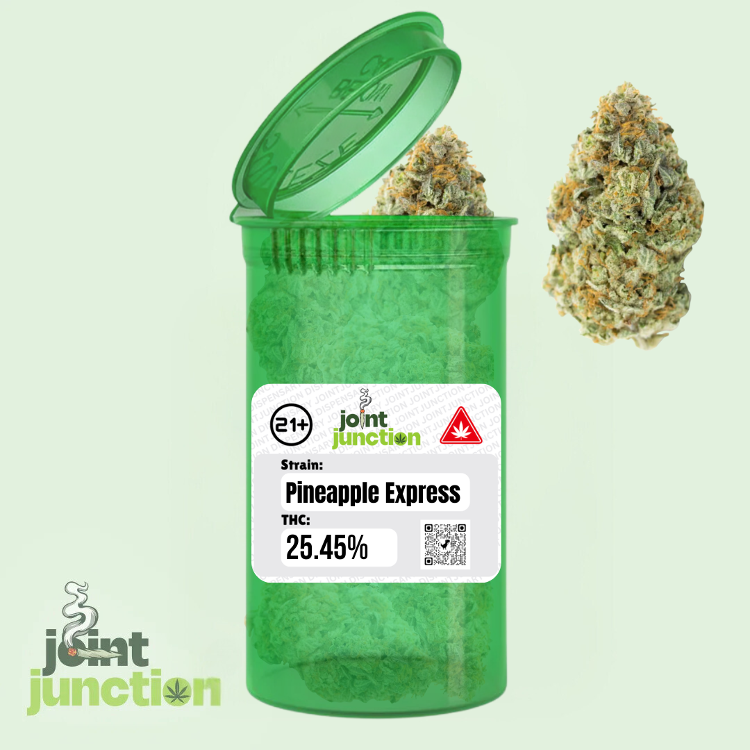 Pineapple Express is a bright sativa strain known for its tropical aroma and vibrant buds. This cultivar features bold notes of sweet pineapple, citrus, and light pine, creating a clean and refreshing flavor profile. Carefully grown and cured, Pineapple Express stands out for its smooth smoke and unmistakable tropical character.