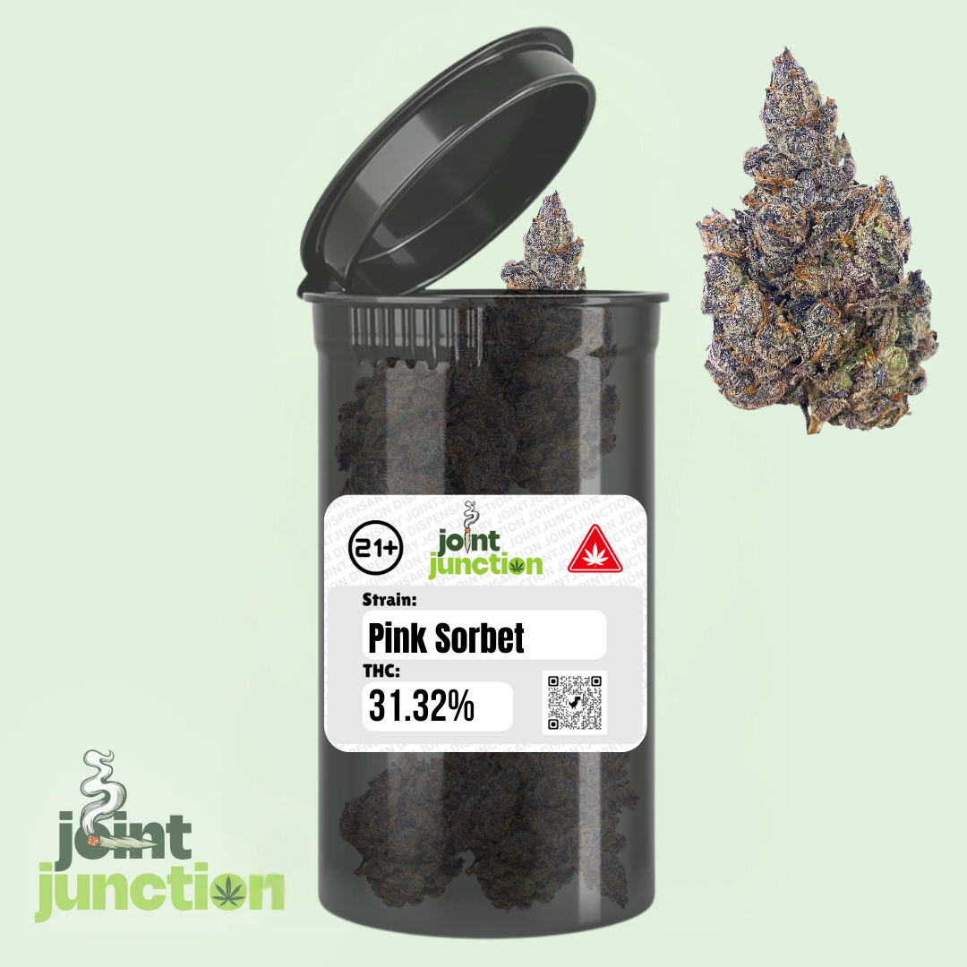 Pink Sorbet, a refined hybrid strain, delights with its smooth, sweet blend of fruity sorbet notes and subtle floral hints. This flower is aromatic, releasing fragrances reminiscent of berries and freshly-cut flowers. Its notable THC content of 31.32% ensures a flavorful, high-intensity experience.