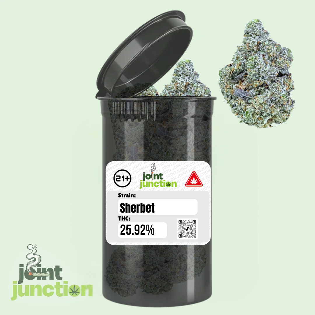Sherbet is a flavor-rich Indica celebrated for its sweet dessert-like aroma, smooth profile, and vibrant character. This strain carries 25.92% THC and offers a layered blend of creamy fruit, bright citrus, and subtle earthy undertones that round out each inhale. The aroma is equally expressive, delivering a burst of fruity sweetness with a clean, satisfying finish.