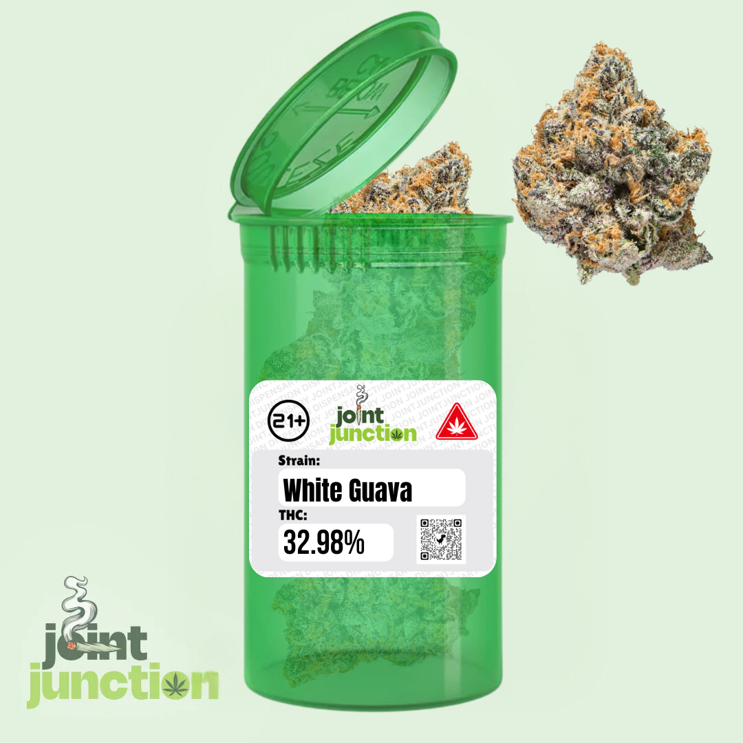 White Guava, a vibrant Sativa-dominant hybrid, enchants with its aromatic fusion of tropical guava and earthy sweetness. Its enticing fragrance features fresh fruit notes blended harmoniously with subtle floral hints. Boasting a potent THC level of 32.98%, White Guava delivers a deeply flavorful and aromatic experience.